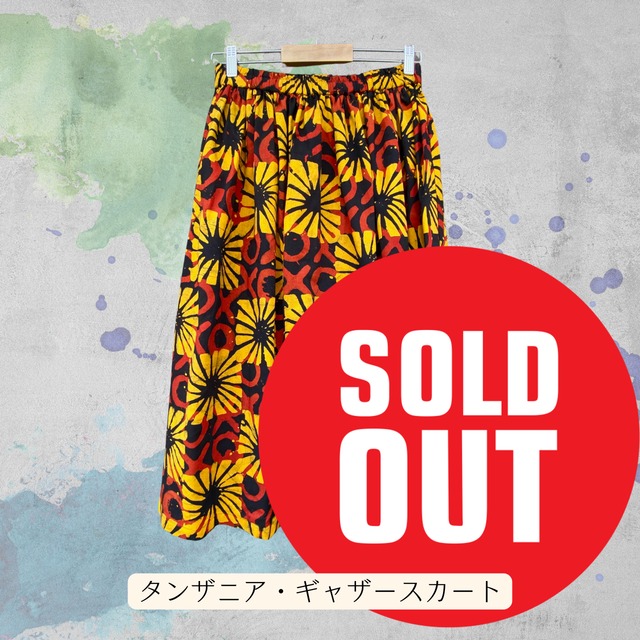 ◆タンザニア手染めバティックを使った1枚だけのギャザースカート◆ ウエストがゴム+紐のらくちん設計で、幅広いサイズに対応しています。また、全体的にゆったりとしたフォルムで夏の暑い時期にはサラリと、冬はレギンスやタイツと合わせてと一年中楽しめます。 やや長めな裾とたっぷりと生地を使ったギャザーがふんわり可愛らしいデザイン。また、タンザニアのバティックの図案と色使いが合わさる事で個性を感じる一着に仕上がります。 使用しているバティックは、ひとつひとつ丁寧にアフリカのタンザニアで染付けしています。同じ図案でも手染めなので、同じものがなく正に世界に一つの生地になっています。 このアフリカの大地が生み出す大胆な文様をもつ生地には、オトナ女性にぴったりの仕上がりになります。遊び心のある貴方だけの一品になると思います。 素材はコットン100%で洗うたびに柔らかくなり、一度着てしまうとやめられない着心地の良さが自慢です。 ・・・・・ 【サイズ】フリーサイズ(ウエストギャザー:ゴム) 【仕上がり寸法】ウエスト 74cm、丈78cm 【素材構成】コットン100% 【その他】ポケットなし ●サイズは、計り方で若干の差が生じます。 ●オンラインショップ上では、色合いが微妙に違って見えます。なるべく、表現できるように調整しておりますが、ご考慮頂けると幸いです。 ・・・・・