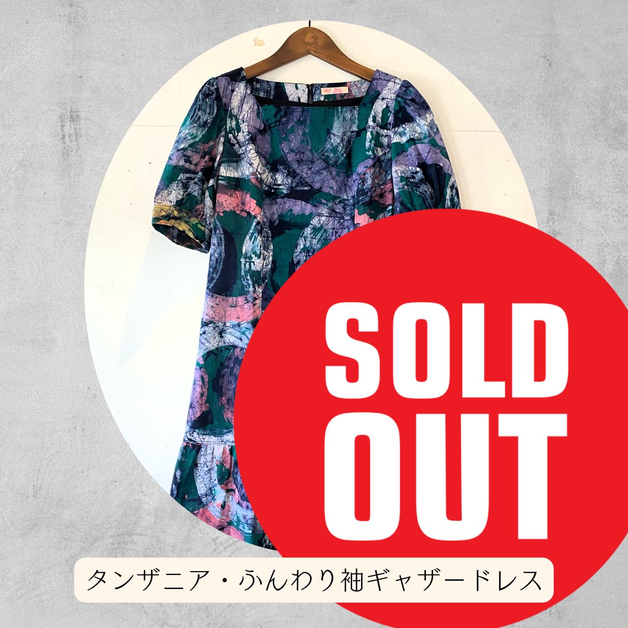 女性らしい優しい感じのシルエットですが、タンザニアのバティックの図案と色使いが合わさる事で落ち着いた感じになり、甘すぎないです。どんなシーンにもおすすめの一着です。